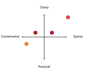 You can literally position your brand onto an X and Y axis. However, the key here is understanding that there can be INFINITE different graphs to draw. The point is to draw a few, and assign an X and Y axis according to values or traits that make sense for your brand or product. For example, on the Y axis you could assign the spectrum between “cheap” and “expensive”, and on the X axis you can assign the opposite values of “fast” and “thorough/slow”. Try not to be too negative in your assigning of values and/or obvious. This should force you to think about WHERE exactly your business falls in these ranges.
