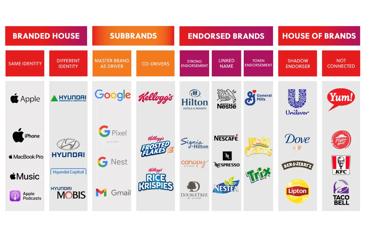 The beauty of brand hierarchy lies in its versatility. Let’s delve into some of the “brand family trees” of different companies to see how they leverage this framework: