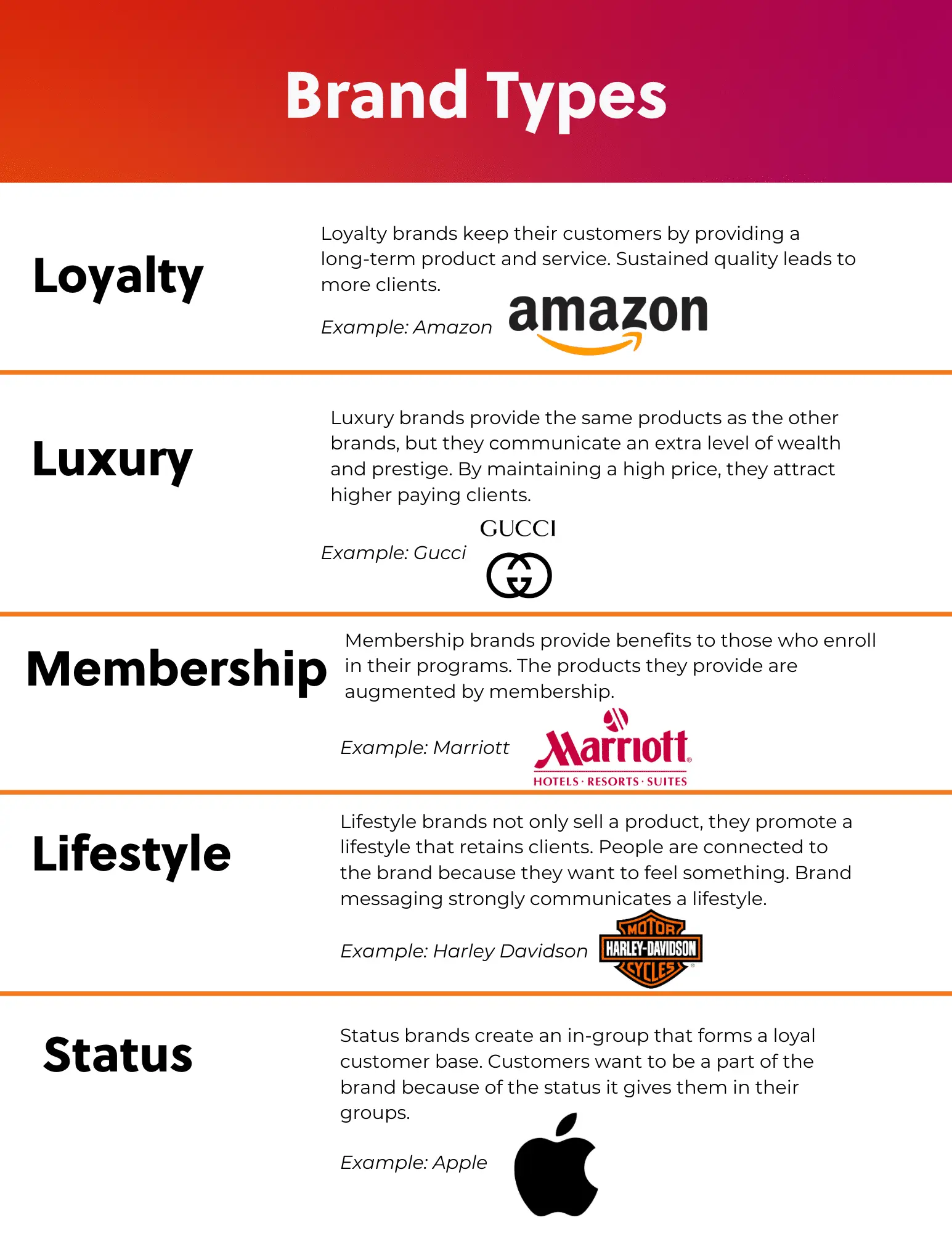 A lot goes into your brand type, so you want to make sure that you have a solid grasp on all aspects of your company. Aspects like human resources, customer service, sales, and other outward-facing and internal parts of your business need to be aligned for any of the above to succeed.